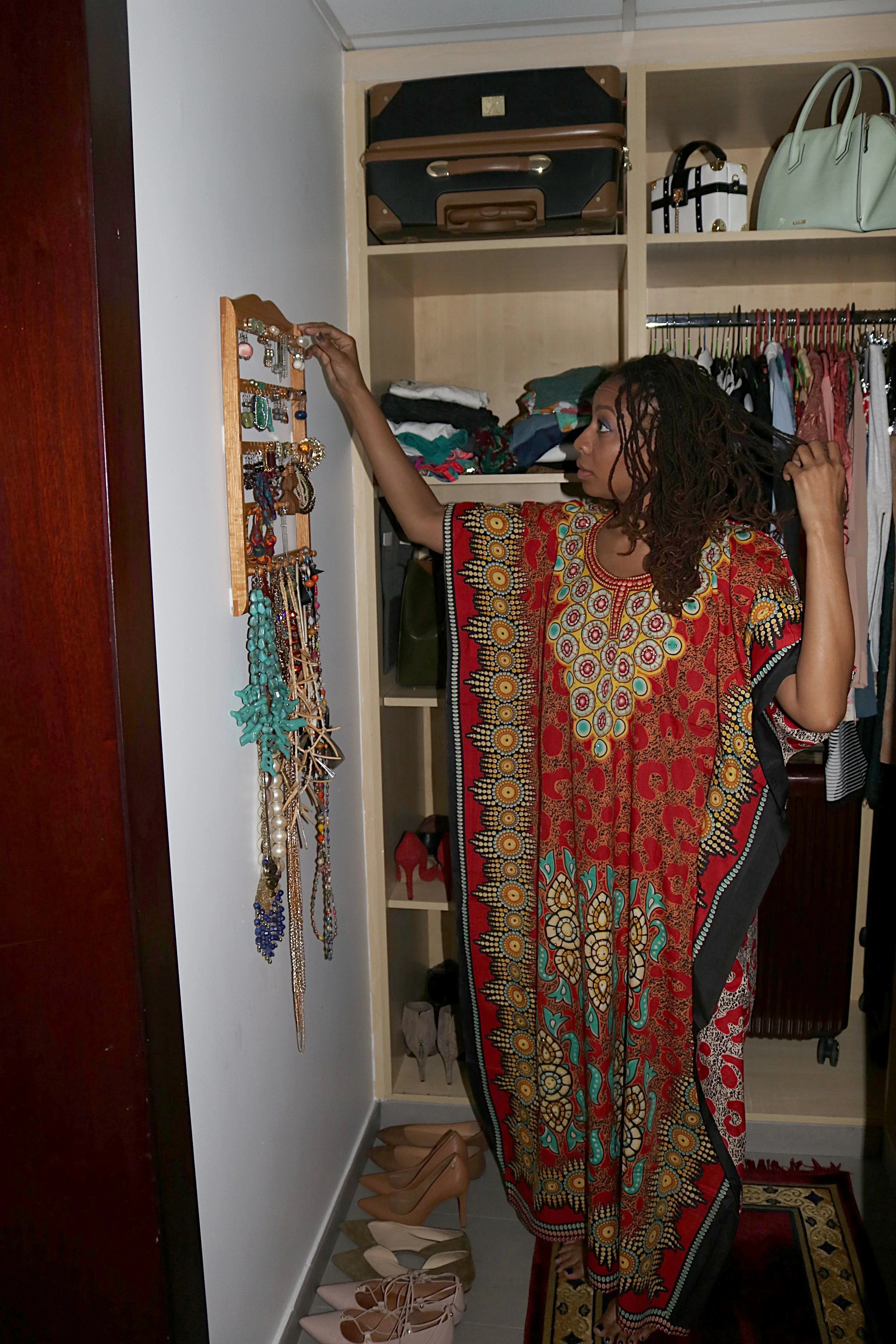 Here's a glimpse into my new closet sitchiation. I checked three bags on the flight over, and shipped one box of mainly for shoes. The night before my movers came, two of my very patient and pragmatic friends came over to help me rationalize my SKUs: